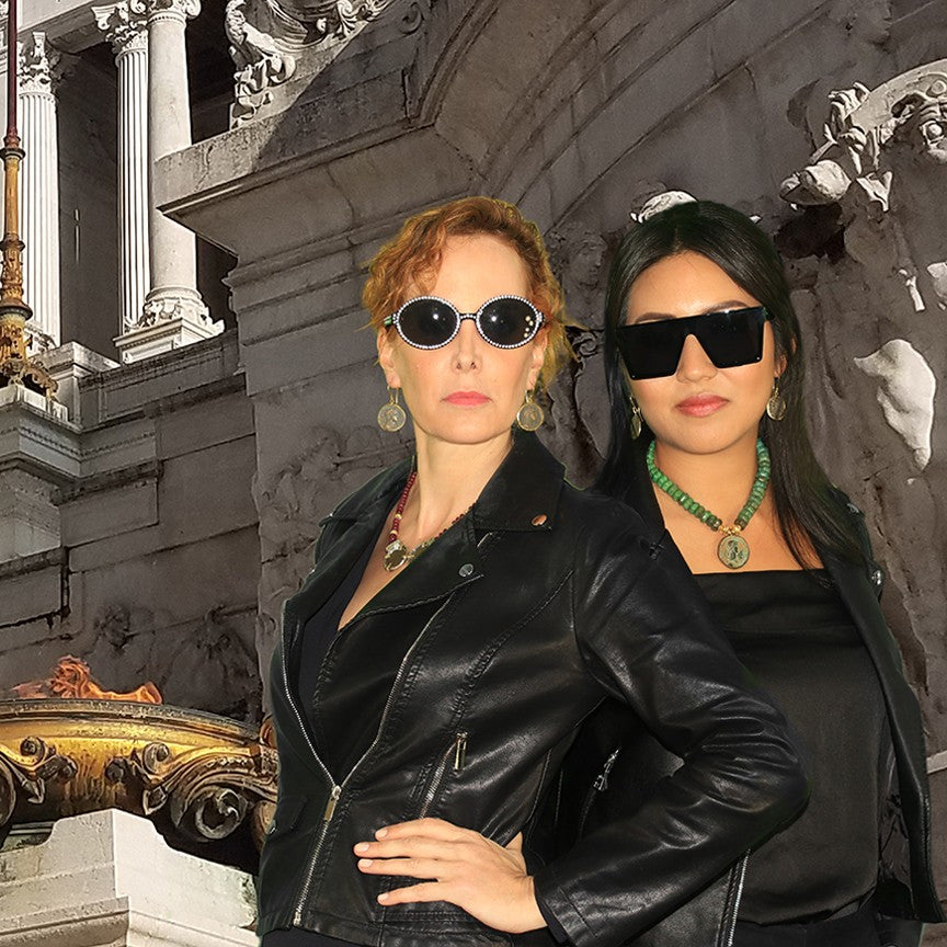 This design was inspired in ancient original necklaces created in Roman times. Simple with beautiful natural line and the contrast of the turquoise with the patina of the coin creates an elegant piece. Agrippina mother of the Roman Emperor Nero.