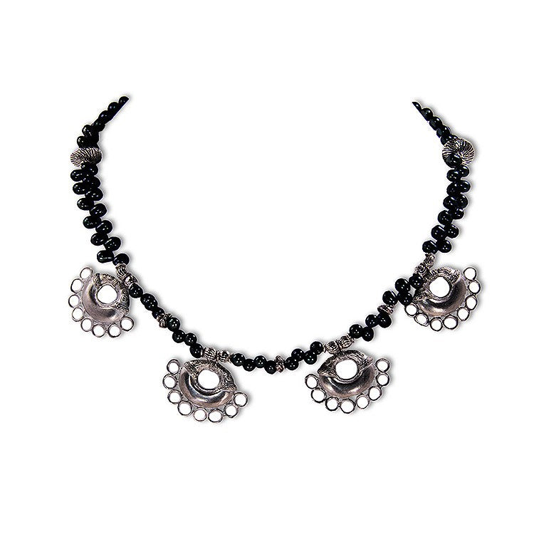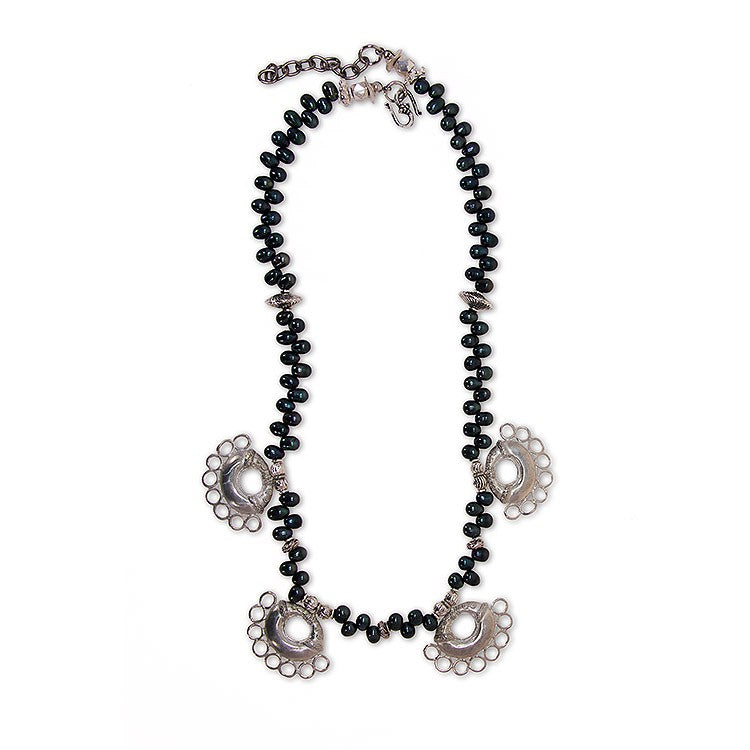 Nose Ornaments were worn to disguise the wearer and also for the change of identity during rituals. The repeated figures enhance the design of this piece and the pearls give it elegance.