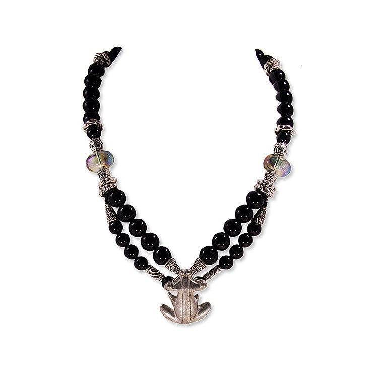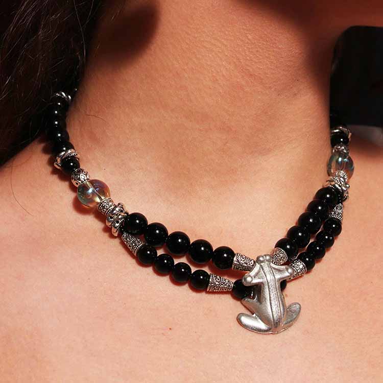 - Stones: Black Natural Onyx and Dichroic Glass.