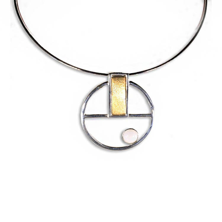In a circular shape, this pendant with the horizontal centerline divides the Heavens from Earth. The Howlite in a circular shape represents PURITY.