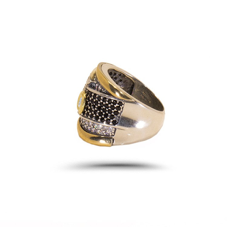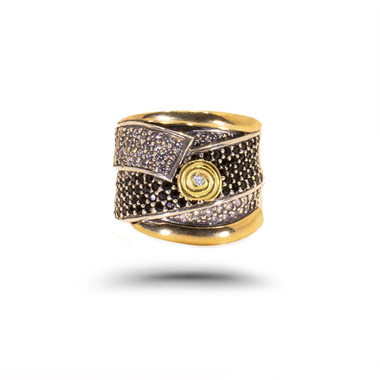 This ring of intensive hand labor due to stones settings is UNIQUE and Elegant because of the contrast of Lines and Metal colors.
