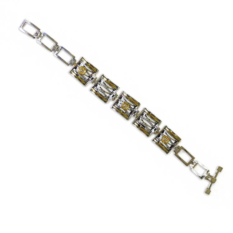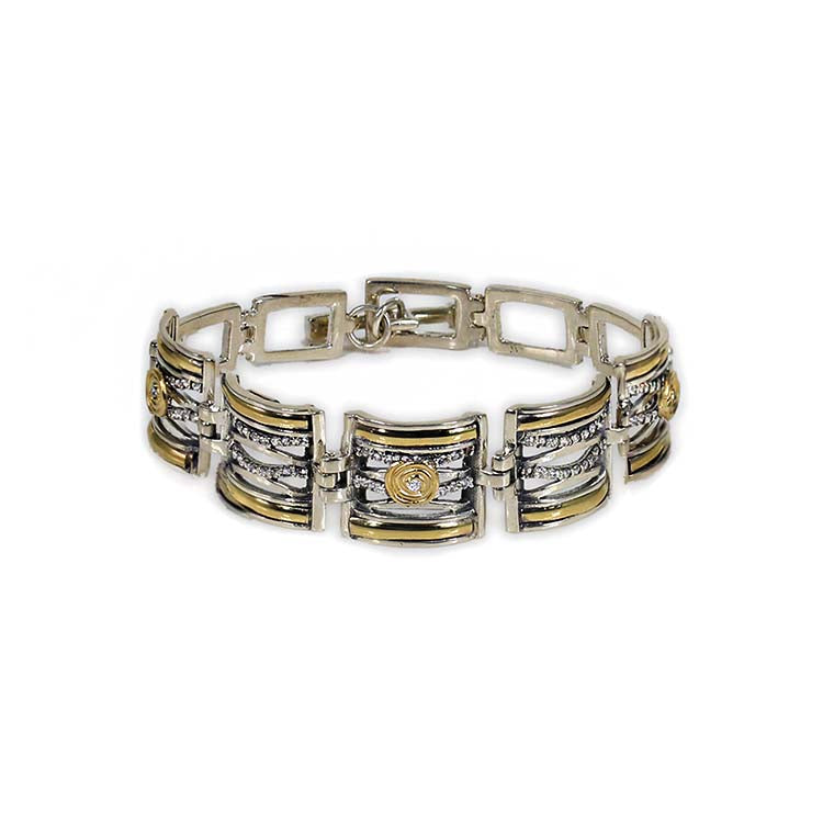 - Metal: Bracelet: Sterling Silver. Top Borders Horizontals: 10K Gold. Spirals: 14K Gold.