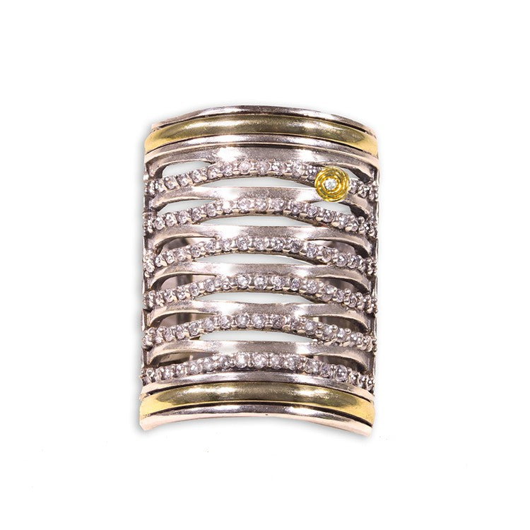 - Metal: Sterling Silver Rhodium Plated / 10K Gold borders and 18K Gold in Spiral.