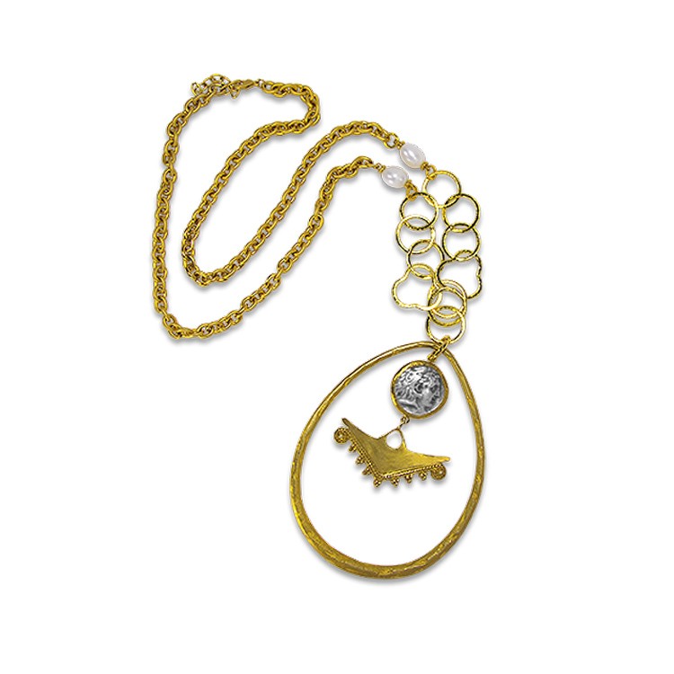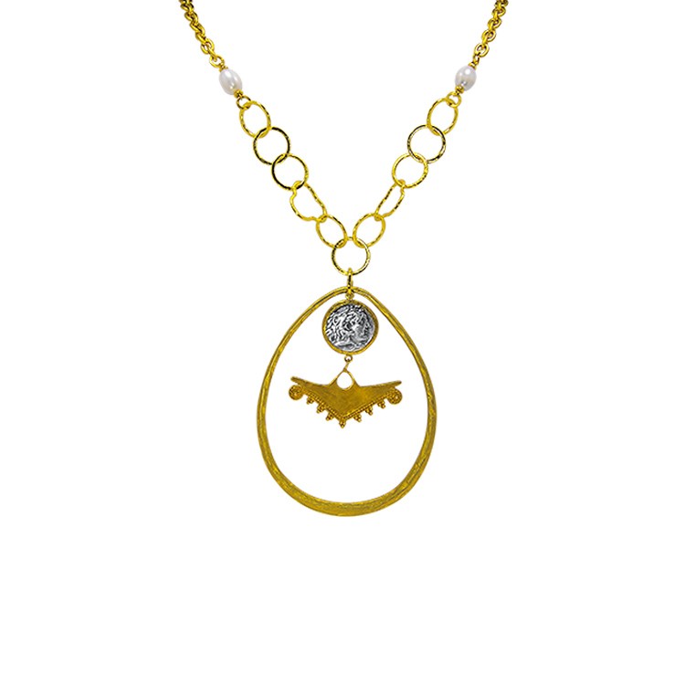 Two ancient cultures in one piece–Alexander the Great with the nose ornament of the Pre-Hispanic culture.
