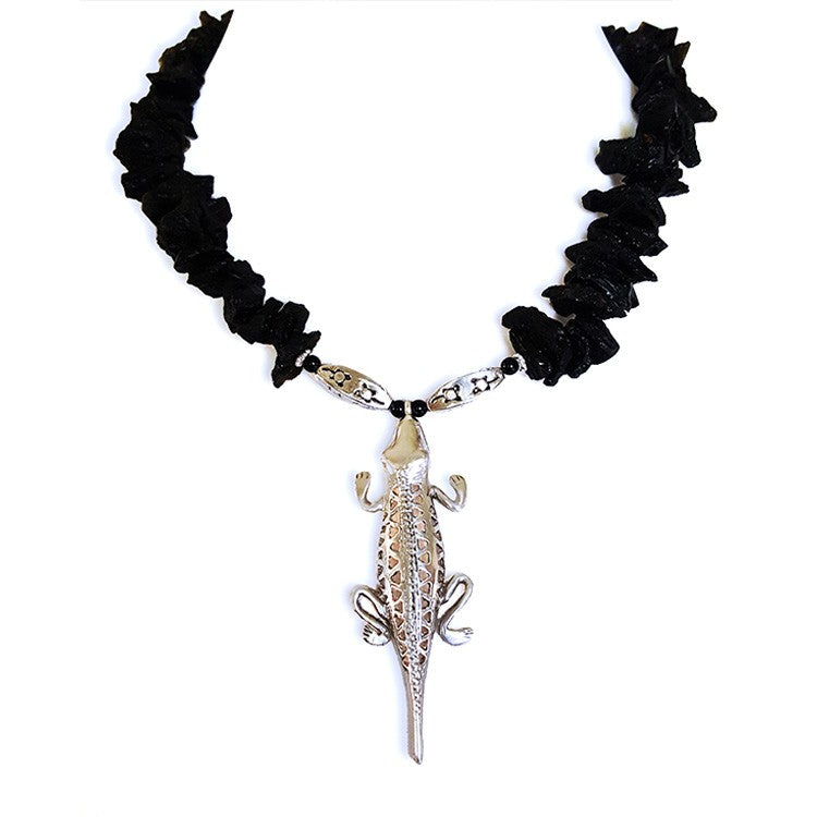 Cayman is smaller alligators and faster. They are of the region of Central and South America and they represented VITALITY in Pre-Hispanic Societies. This necklace is unique due to the symbol of such great design!